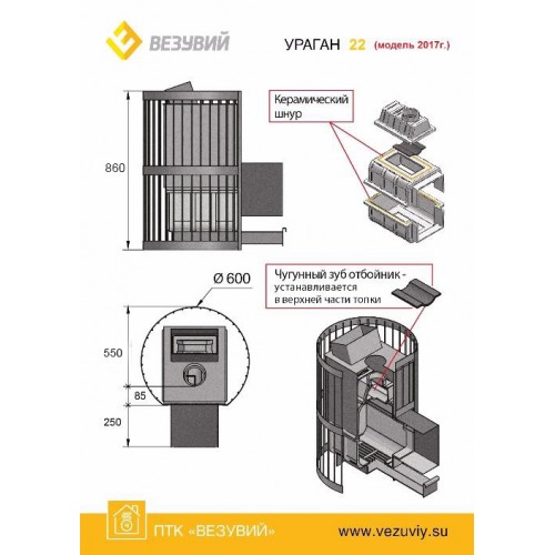 Банная печь Везувий Ураган Стандарт 22 (ДТ-4С)