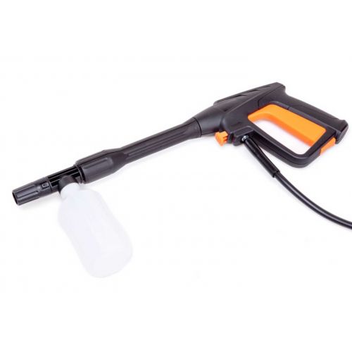 - мойка, - верхняя рукоятка с катушкой и шлангом высокого давления, - пистолет, - направляющая трубка, - трубка- распылитель, - крепление трубки, - подставка для трубки, - штуцер для шланга, - набор для чистки форсунок, - набор крепежа, - инструкция по эксплуатации