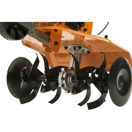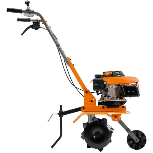 транспортировочное колесо, рукоятка управления, штанга рукоятки управления, защитные диски - 2 шт, фрезы - 2 шт, сошник, сцепка сошника, свечной ключ, упор свечного ключа, пружина на транспортировочное колесо, болт фиксации транспортировочного колеса, болт фиксации штанги - 2 шт, болт фиксации рукоятки управления - 2 шт, болт фиксации крыла - 2 шт, шайба (M6) - 2 шт, шайба (M8) - 5 шт, зажим троса сцепления, руководство пользователя, упаковка.