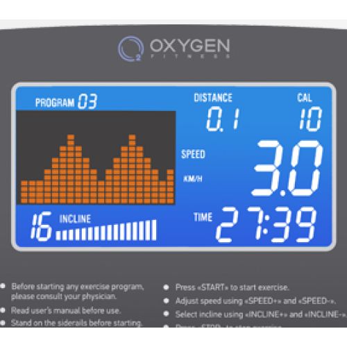 прошедшее время, пройденное расстояние, текущая скорость, угол наклона, расход калорий, пульс