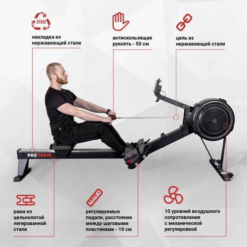 Гребной тренажер Protrain ProRower-001, аэродинамический