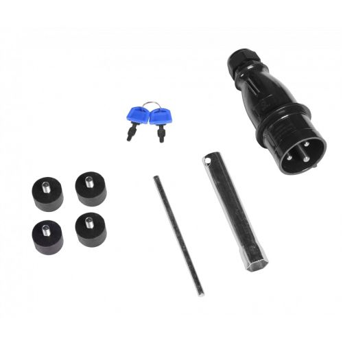 вилка 220/32А, свечной ключ, комплект резиновых опор, инструкция, коробка