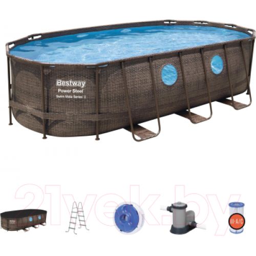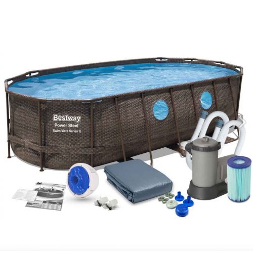 картриджный фильтр-насос (5678 л/ч), лестница, инструкция по сборке, тент-чехол, дозатор для хлорных таблеток (поплавок)